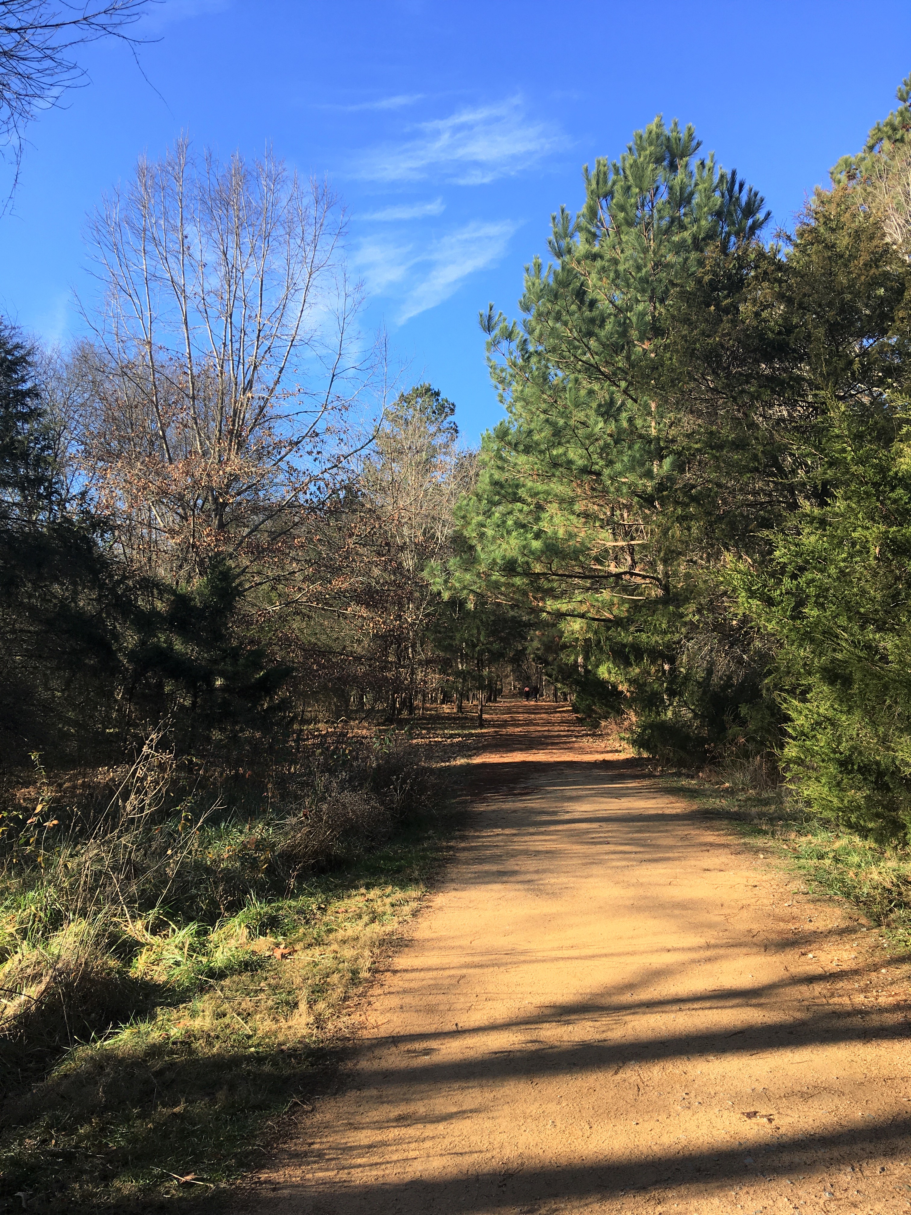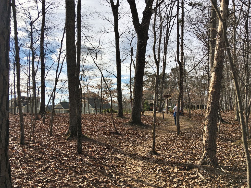 From our new house in the Forest Ridge development, there is a trail that leads down to the Eno River, connecting with a well-traveled path to downtown Hillsborough.