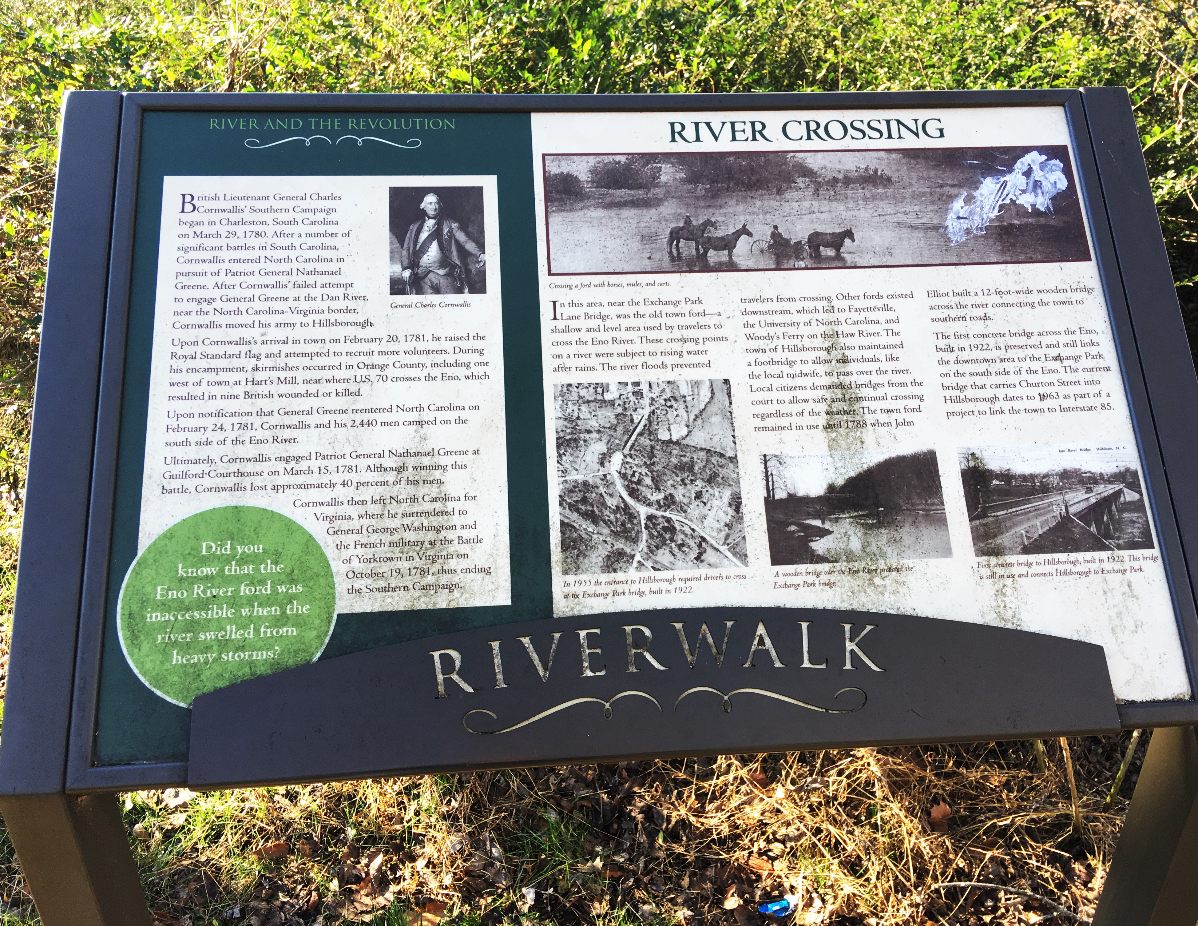 We connected to Hillsborough’s River Walk, and much of our route was also part of North Carolina’s Mountain to the Sea Trail, which is still a work in progress.