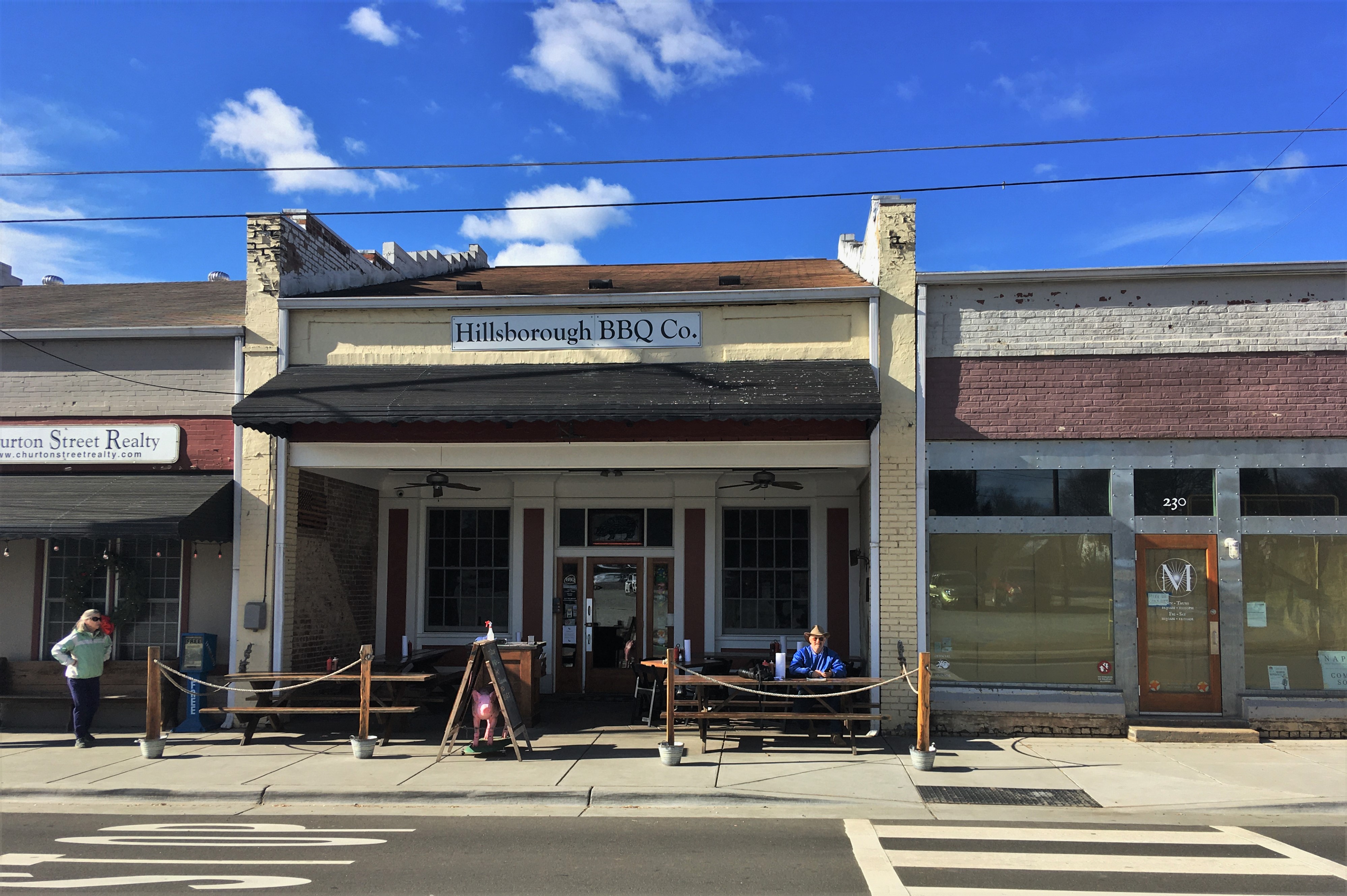 The original known people group near the Eno River were the Occoneechi. Hillsborough has erected this fort-like structure to resemble one of their encampments.
