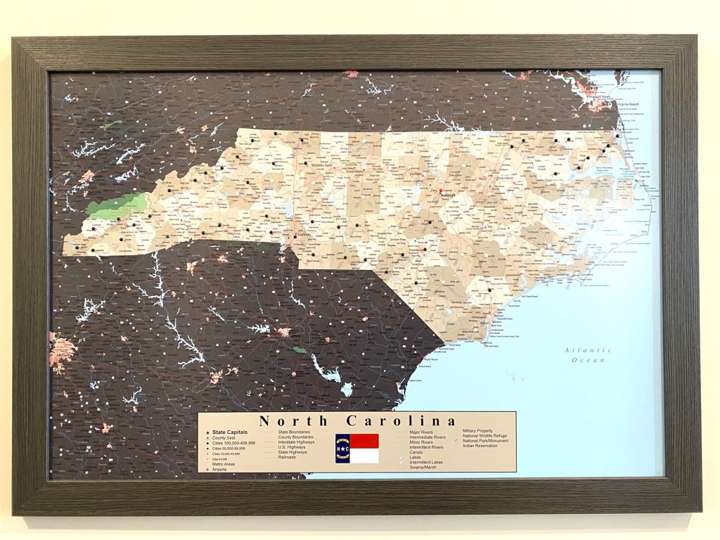 While we were chasing birds, we also visited all 100 counties of North Carolina. We put pins in a map after we went to each county seat and courthouse.