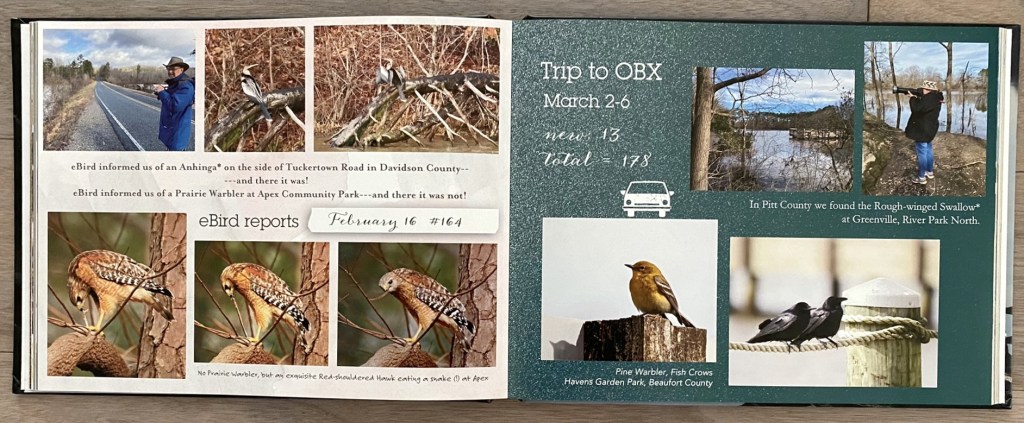 In 2021 we did a Tar Heel Big Year, trying to see as many bird species as we could throughout our new home state (315 for Loren, 311 for me). The albums are finished!