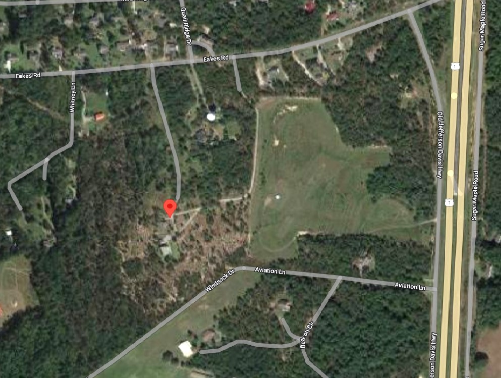 We attempted to drive in on Aviation Road, but the NO TRESPASSING signs were daunting. So we circled around to the north and looked for that unnamed road off of Eakes, which turned out to no longer exist. BUT a new house was under construction nearby, with a little gravel road that dead-ended up in the woods. Perfect!