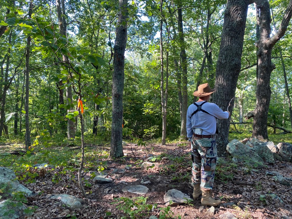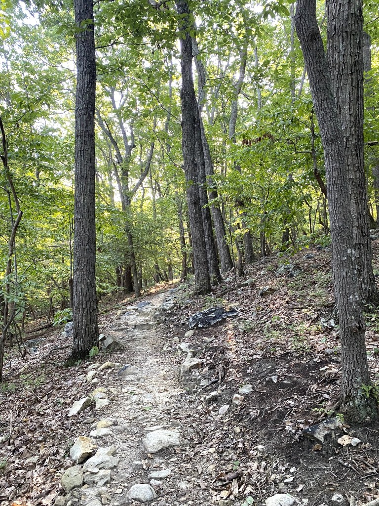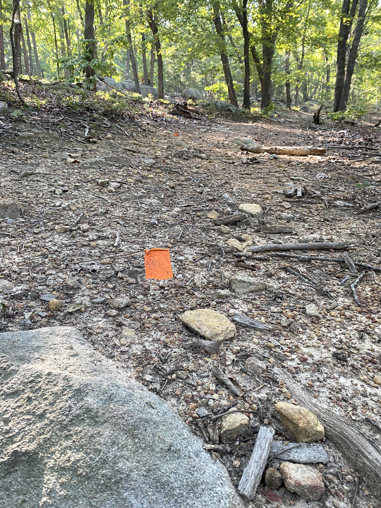 Then we had a long mile of orienteering through the forest with lots of criss-crossing unmarked trails and random ribbons and cairns and downed trees and boulders-where-I-hope-there-aren’t-any-copperheads.