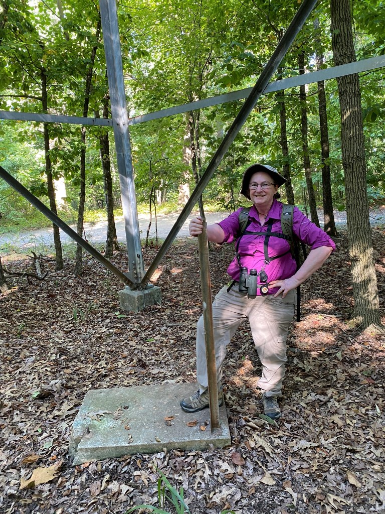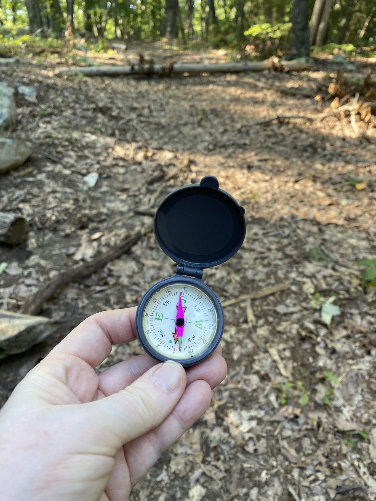 The route was one mile on the park’s maintained trail, and then a little bit on a flagged trail, with another mile just following directions–using a compass and GPS. Thanks to that big old cell phone tower we had perfect connectivity!