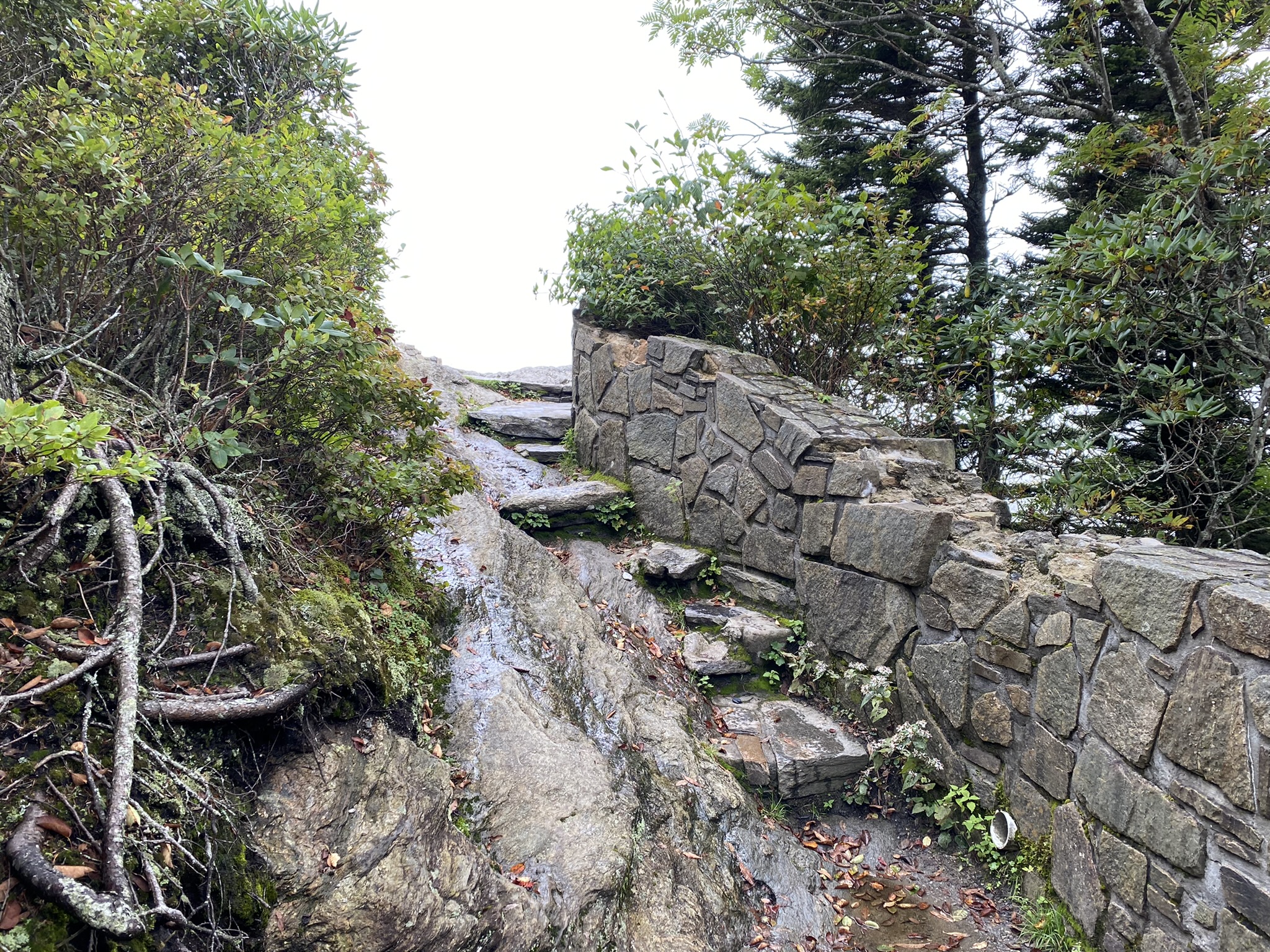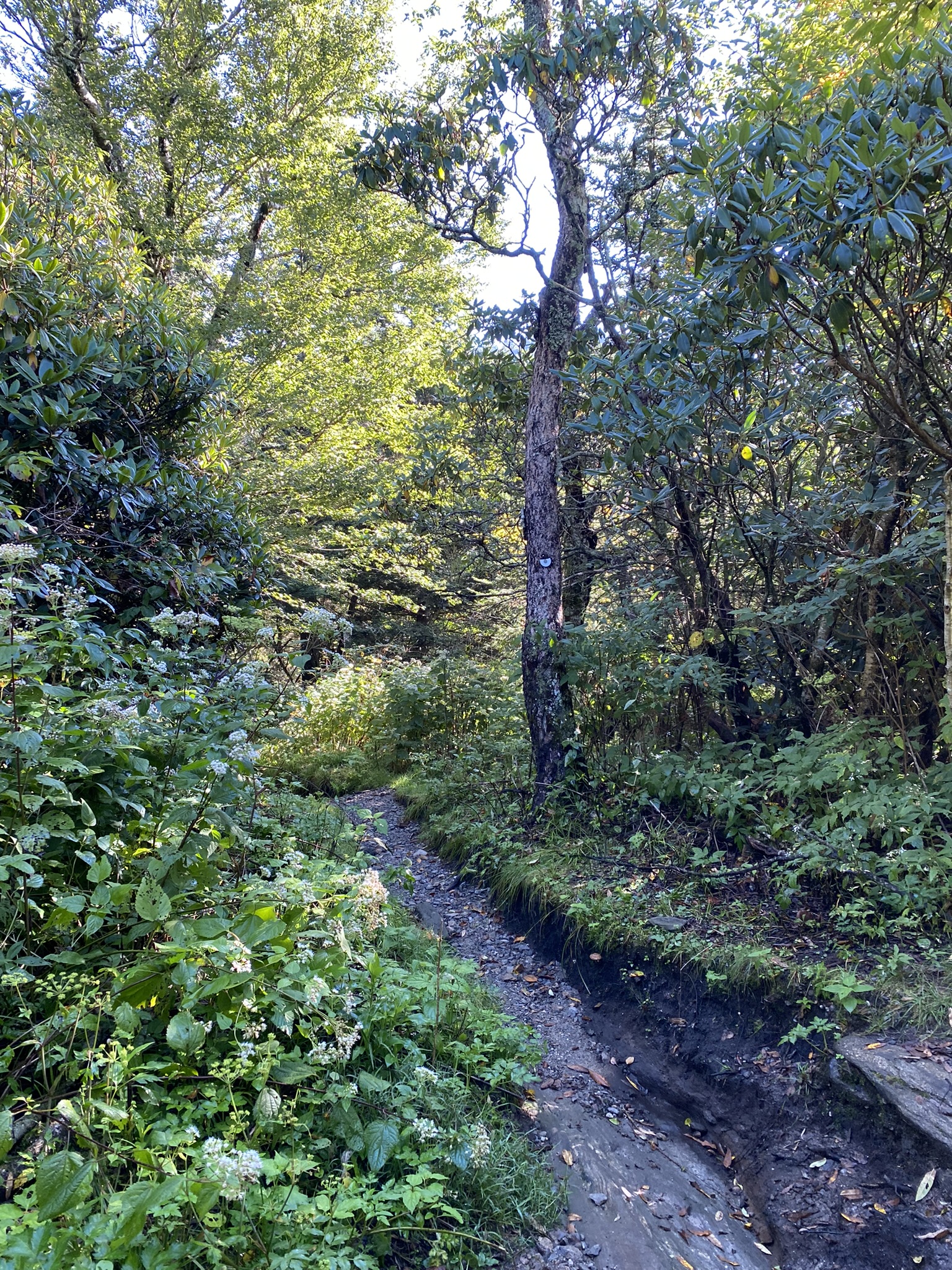 The trail to Transylvania County’s highpoint began at the parking lot to Devil’s Courthouse on the Blue Ridge Parkway.