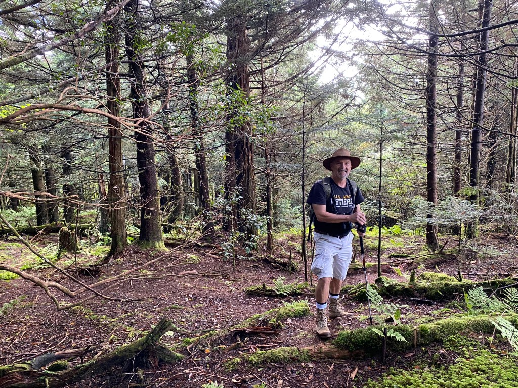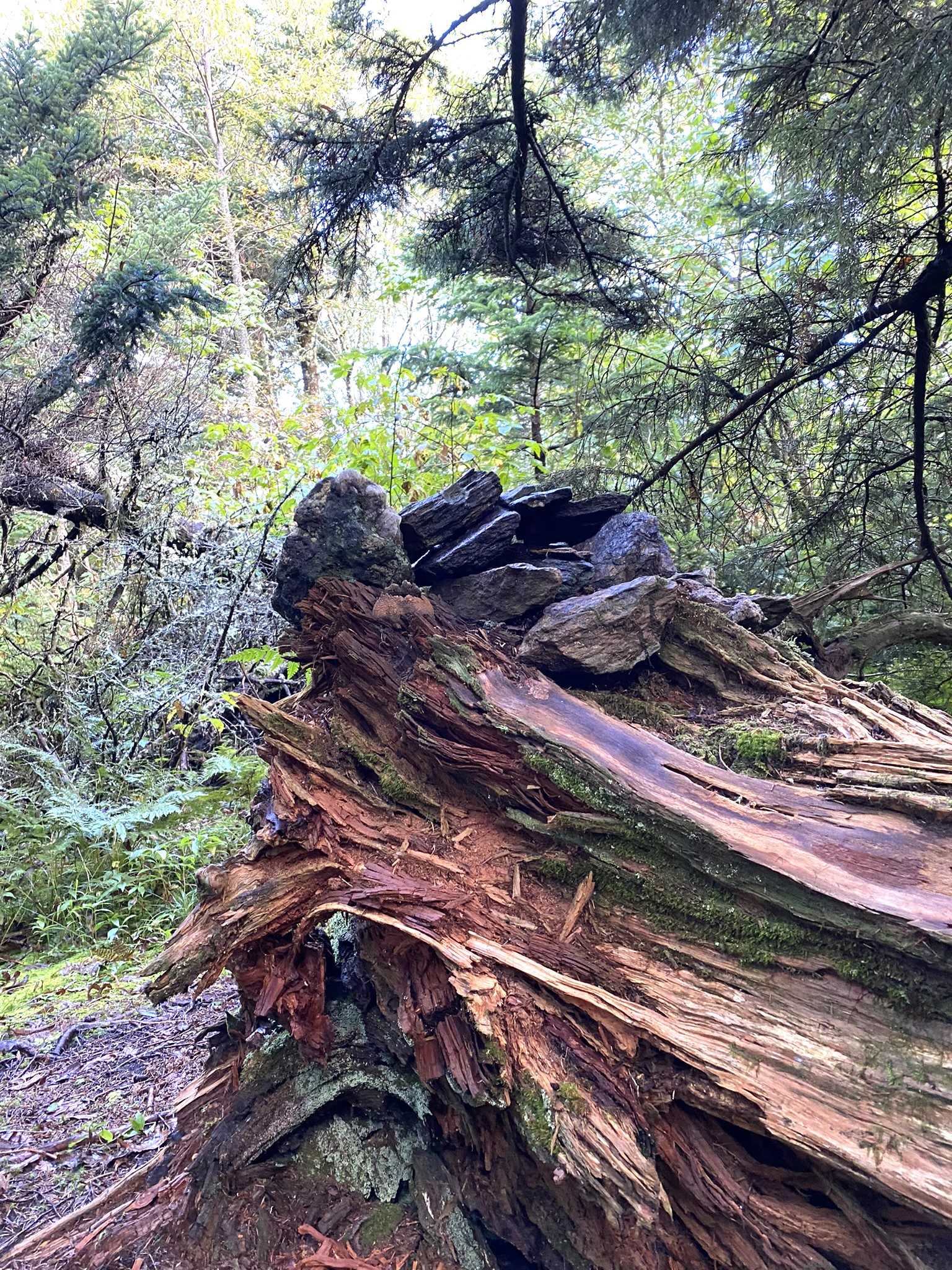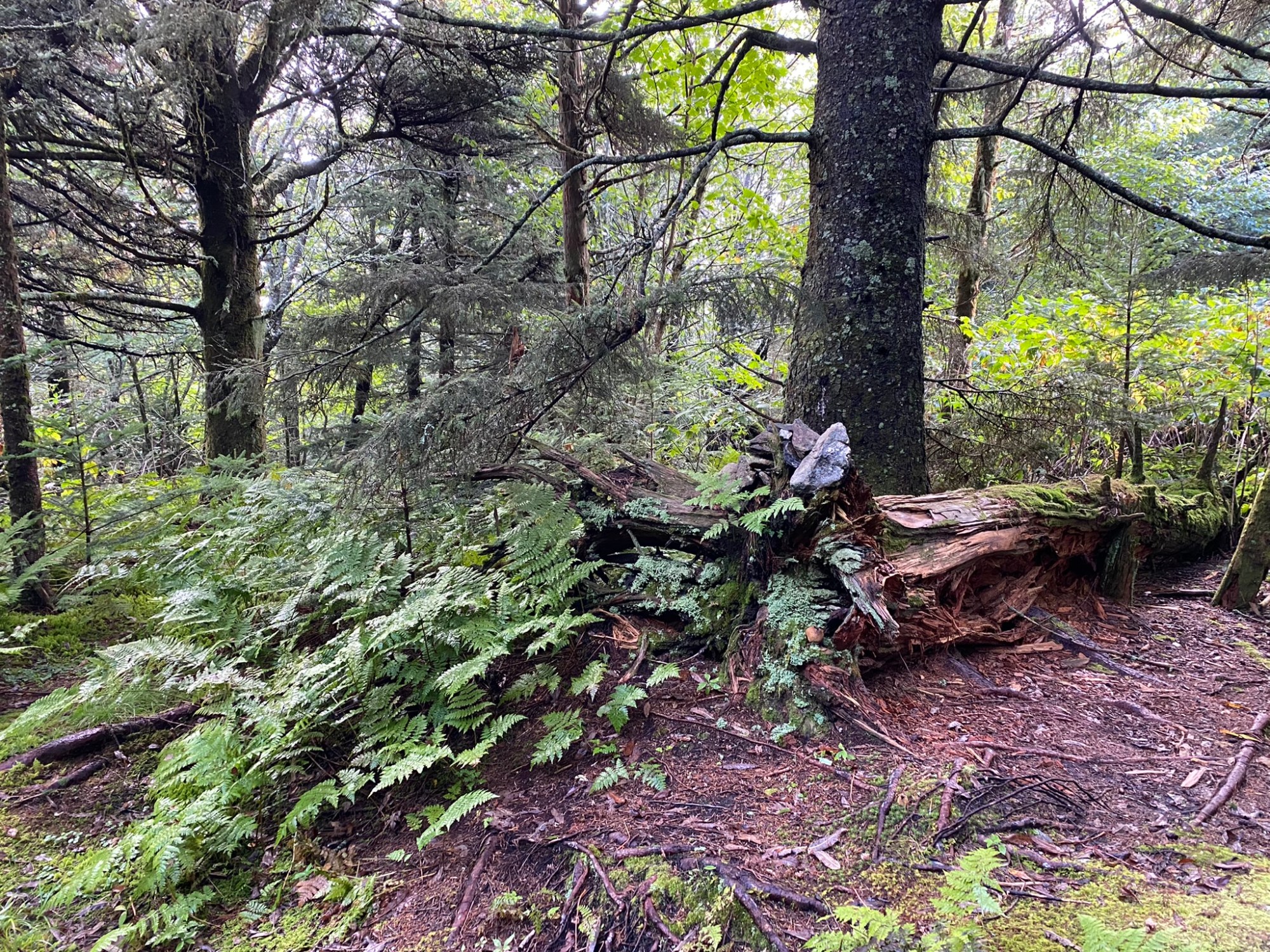 The top of Chestnut Bald was obvious and well-marked with a cairn…although placing it atop a rotting log is unusual…and temporary.