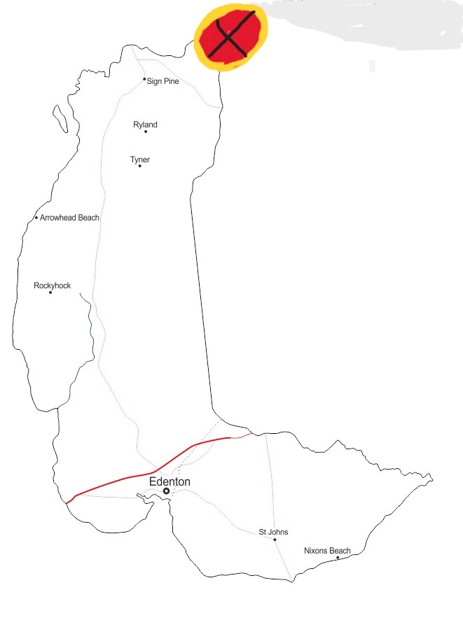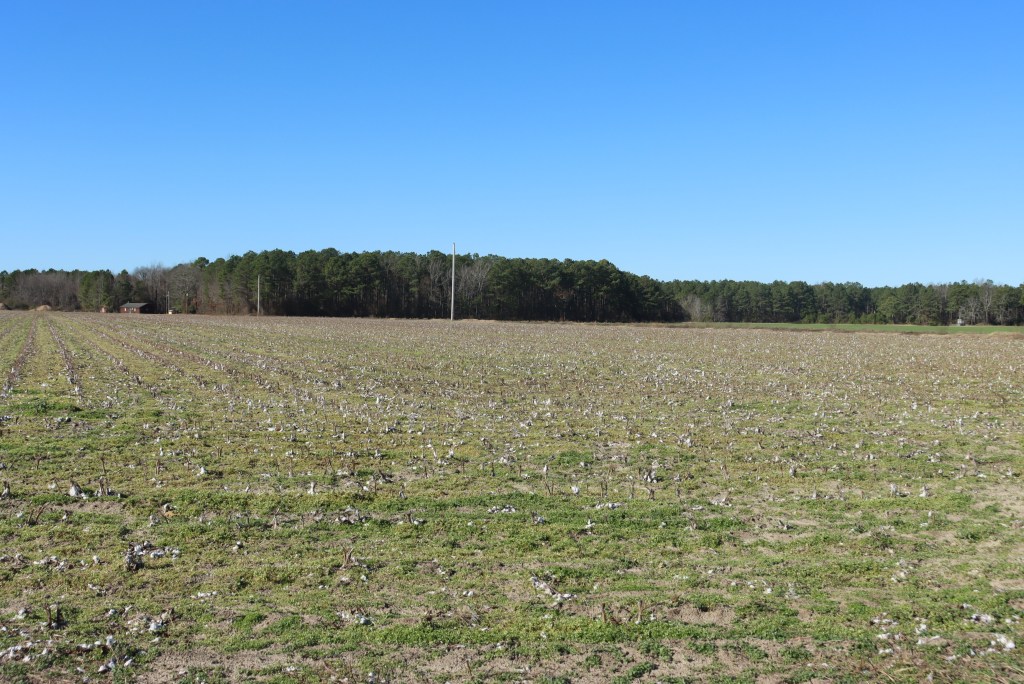 But this particular Chowan County cotton field belongs to a different farmer, and it is the dreary winter–but here we are, anyway, because out by that pole is the highpoint we seek.