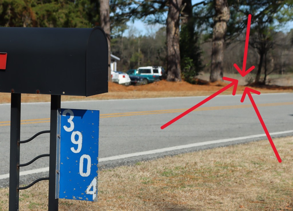 While I am here at 3904 looking for something scenic, Loren is over there where we parked the car looking out into a grassy field.