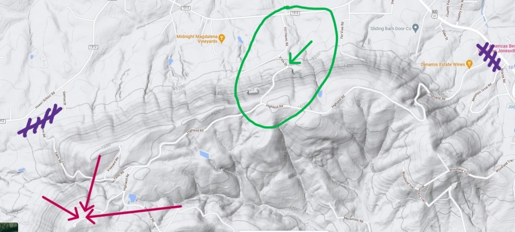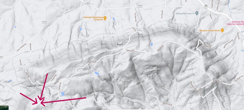 So here’s the situation. The highpoint is on a very long ridge, all privately owned, and they’re pretty serious about keeping us out. Unlike a similar situation in Davidson County, there isn’t even a vantage point to catch a glimpse of the highpoint.
