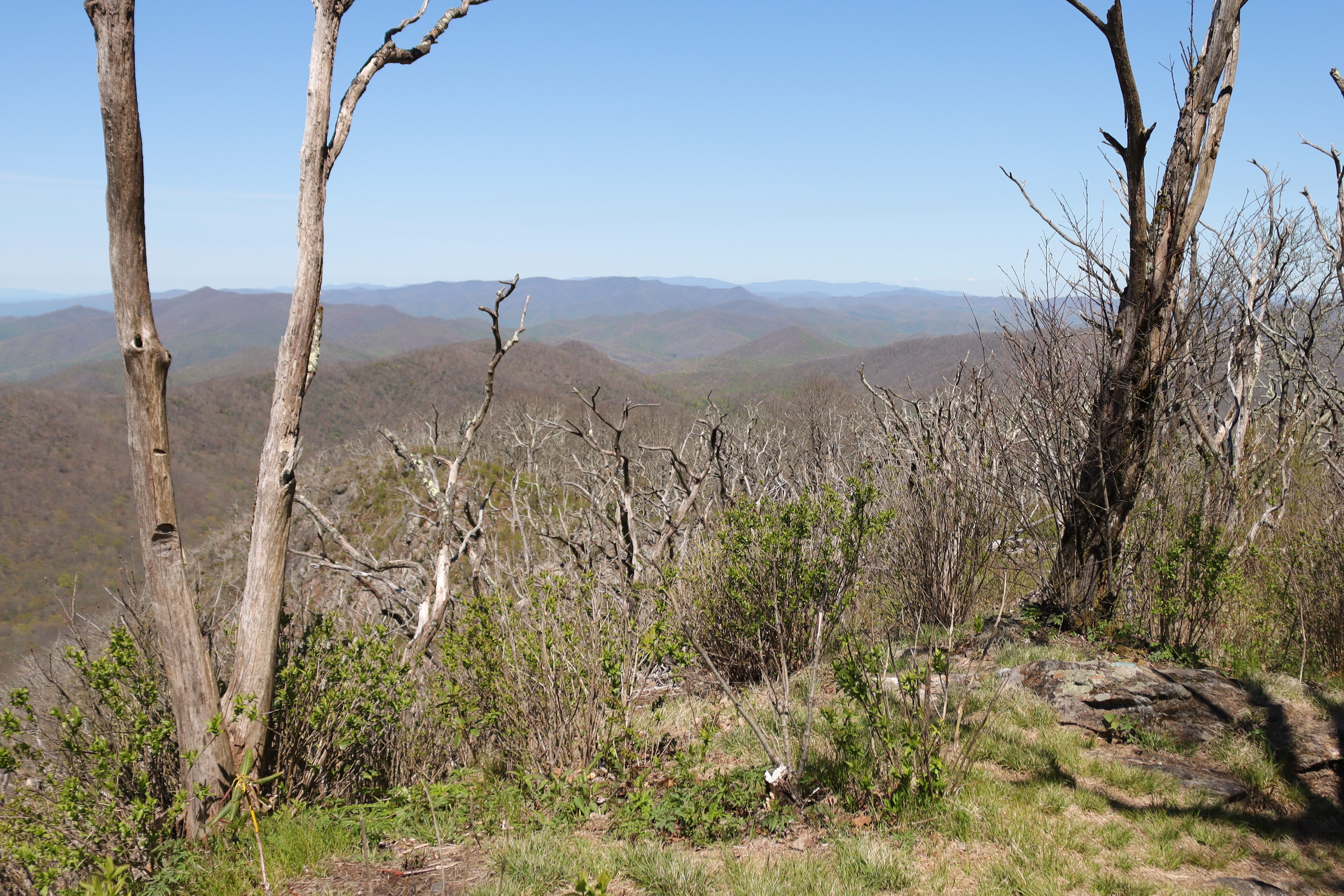 Yay! A two-fer! The county line cuts right across the summit block of Standing Indian Mountain in the Southern Nantahala Wilderness.