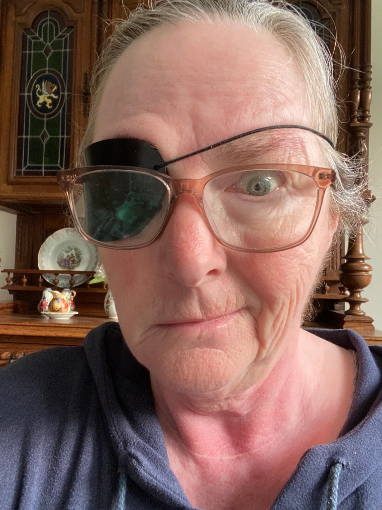 Not being able to close your eye is one of the more serious complications of Bell’s Palsy, because it can easily lead to scratching of the cornea. Lots of experimentation with eye drops, eye gels, taping.