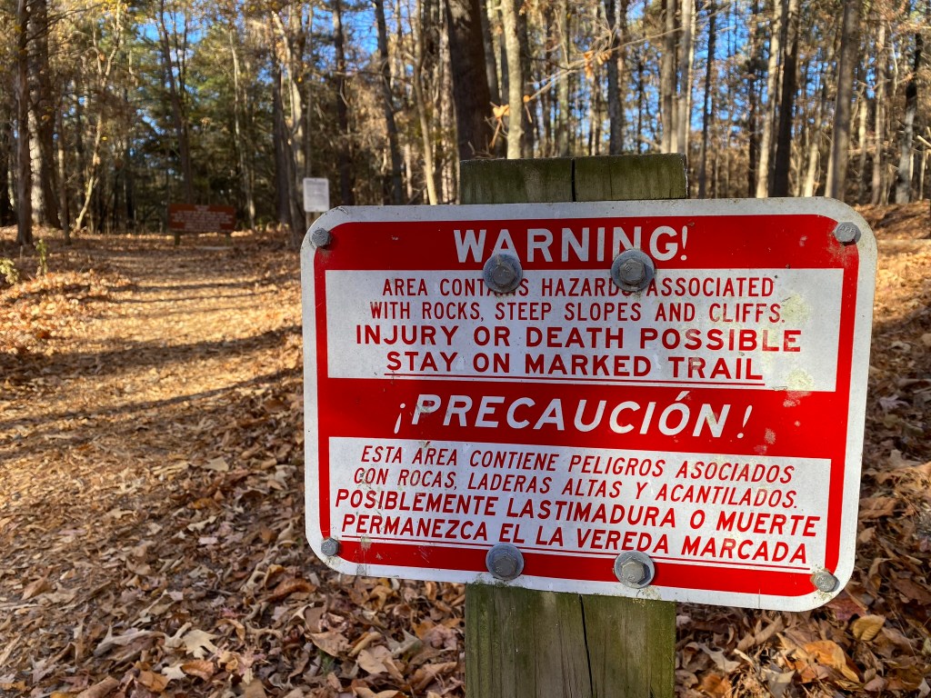 The Eno Quarry was mined in the 1960s to help pave Interstate 85 and was filled with water before being abandoned. It’s a popular swimming spot in the summer, despite all the warning signs.