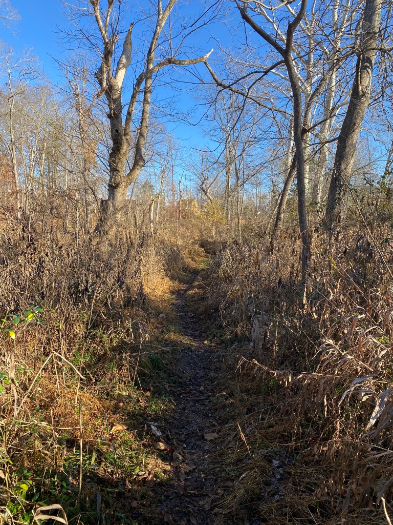 The route felt less-traveled, although obviously it’s not that remote! I could see a neighborhood of houses through the winter woods.
