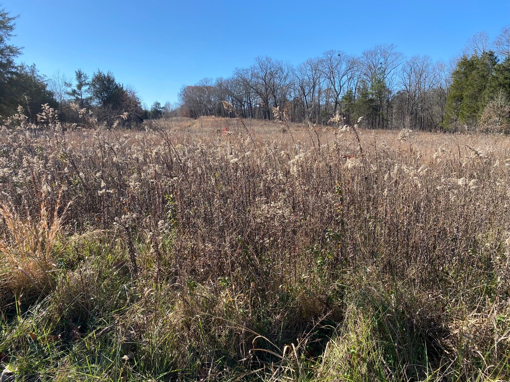 The short-cut across the peninsula led through this pretty meadow, and then into some very “birdy” woods–several species of woodpeckers and a flock of Cedar Waxwings.
