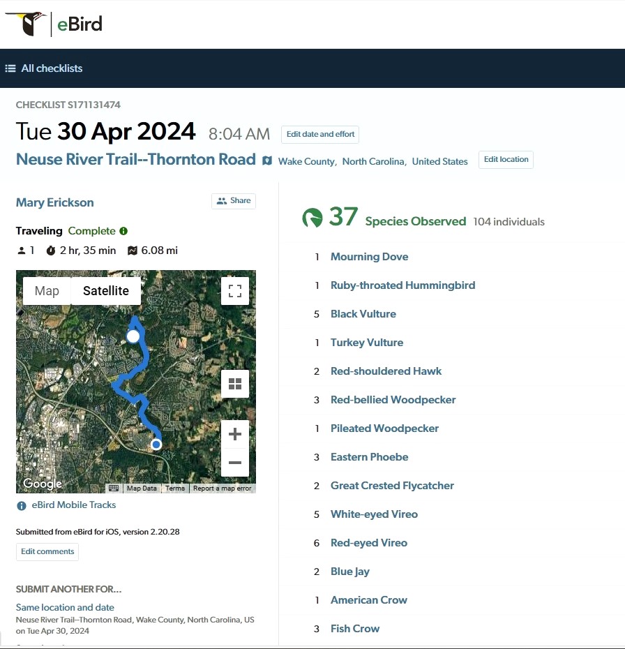 Part of the fun of these hikes is keeping a birding list, which I post on eBird.