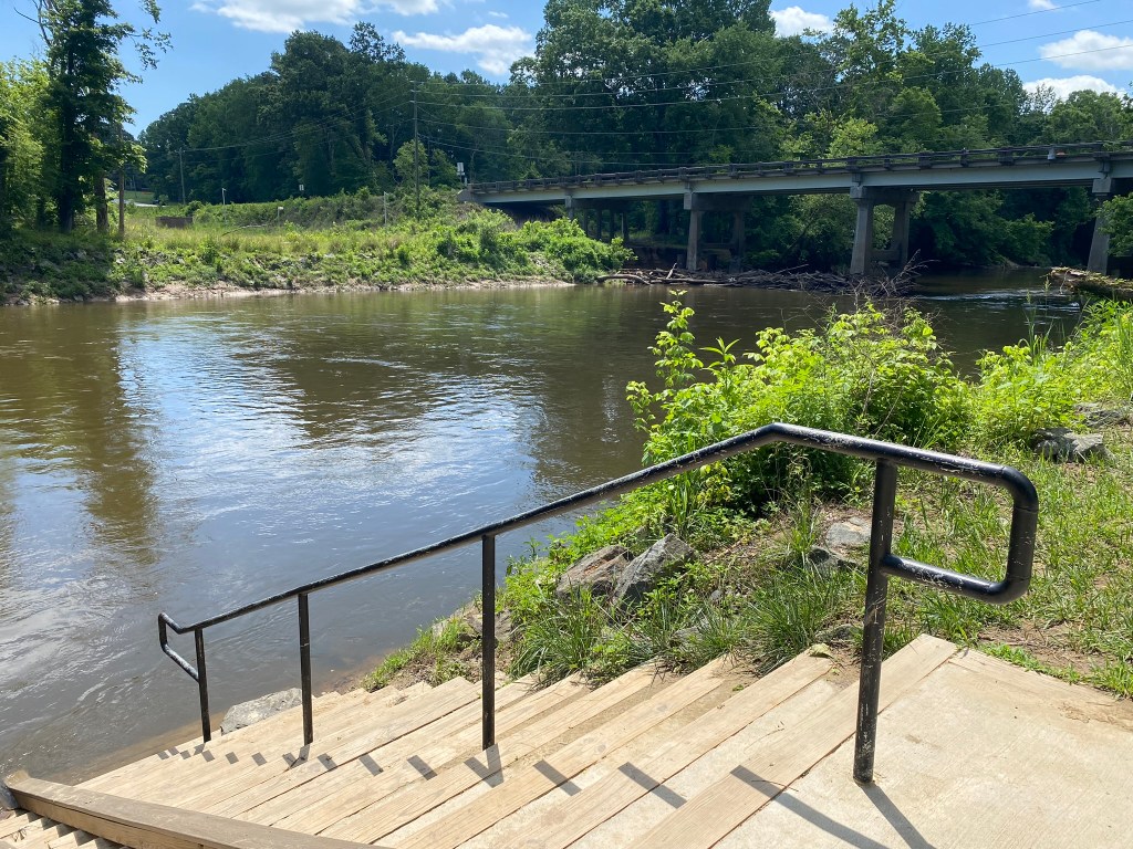 Because of the recent rains, the Neuse River was flowing at a pretty good clip here.