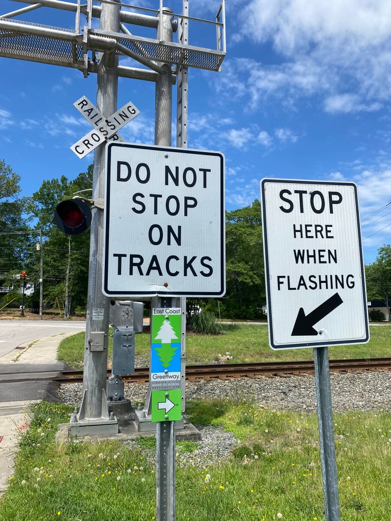 “It is tempting to turn left and walk along the railroad tracks to avoid traffic, but it is illegal to hike on railroad tracks.” (MST trail guide)