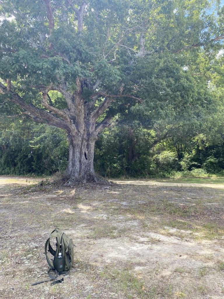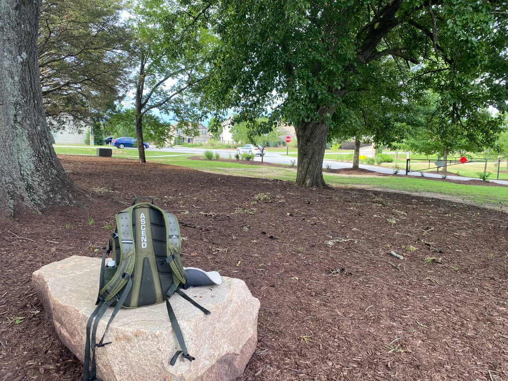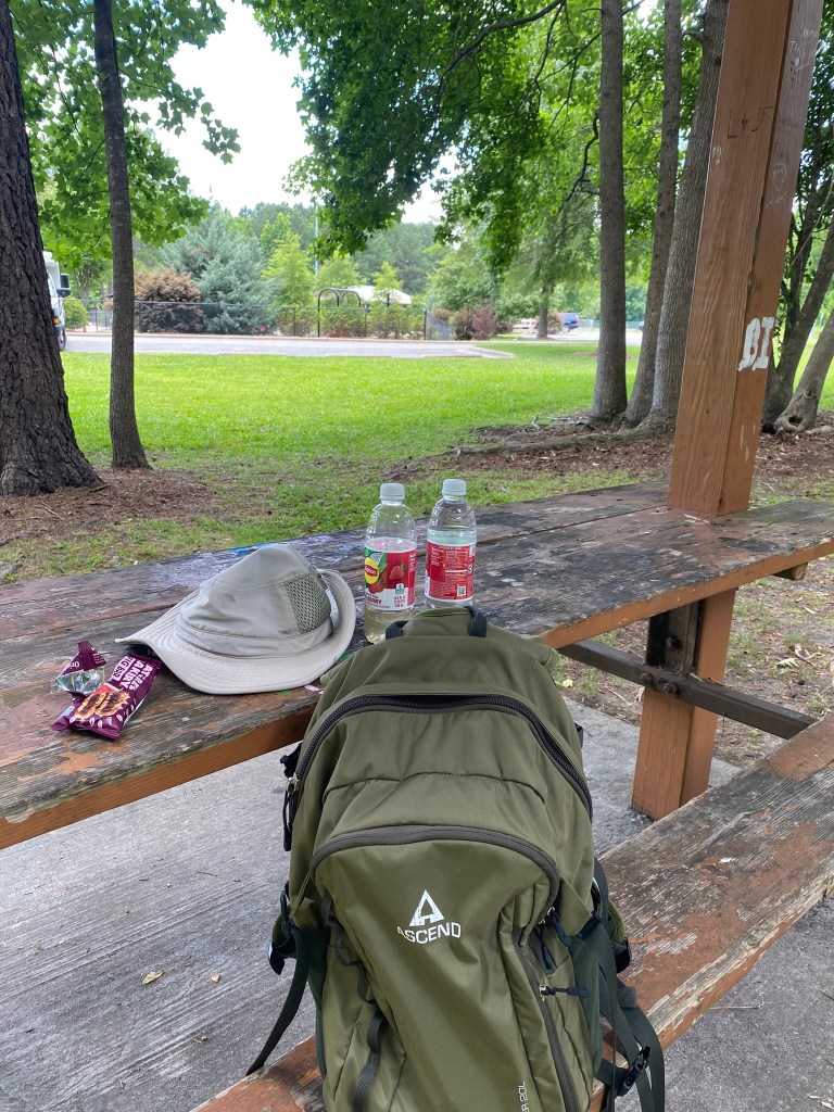 I found a little shade over by the restrooms at Wilson’s Mills Park.