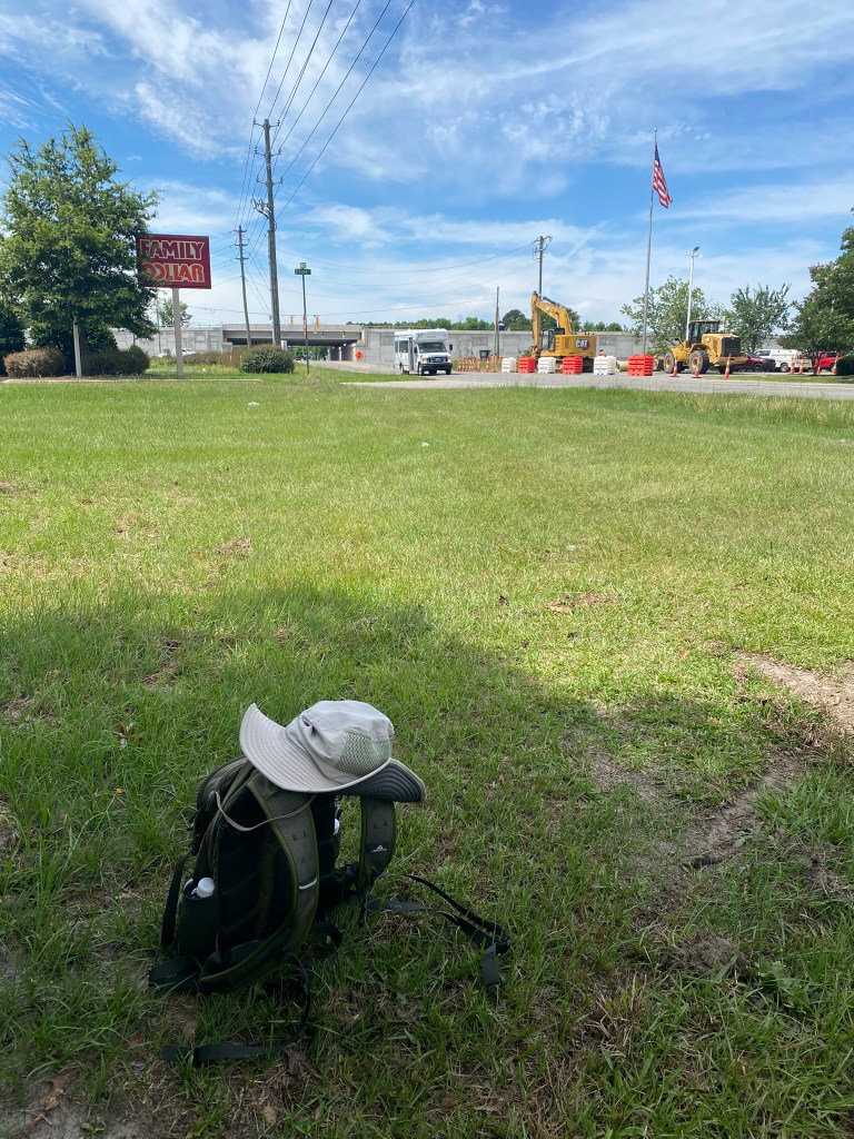 Halfway point at the Family Dollar near I-70. Not a scenic rest-stop, but the shade was appreciated. It’s quite warm!