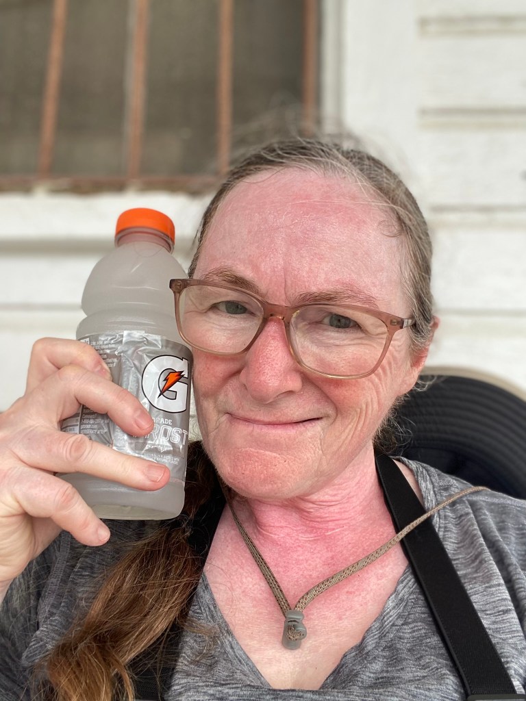 I employed all five Beat the Heat strategies, re-filling my numerous water bottles at the Bentonville Community Center spigot, and a few miles later, at Howell Woods.