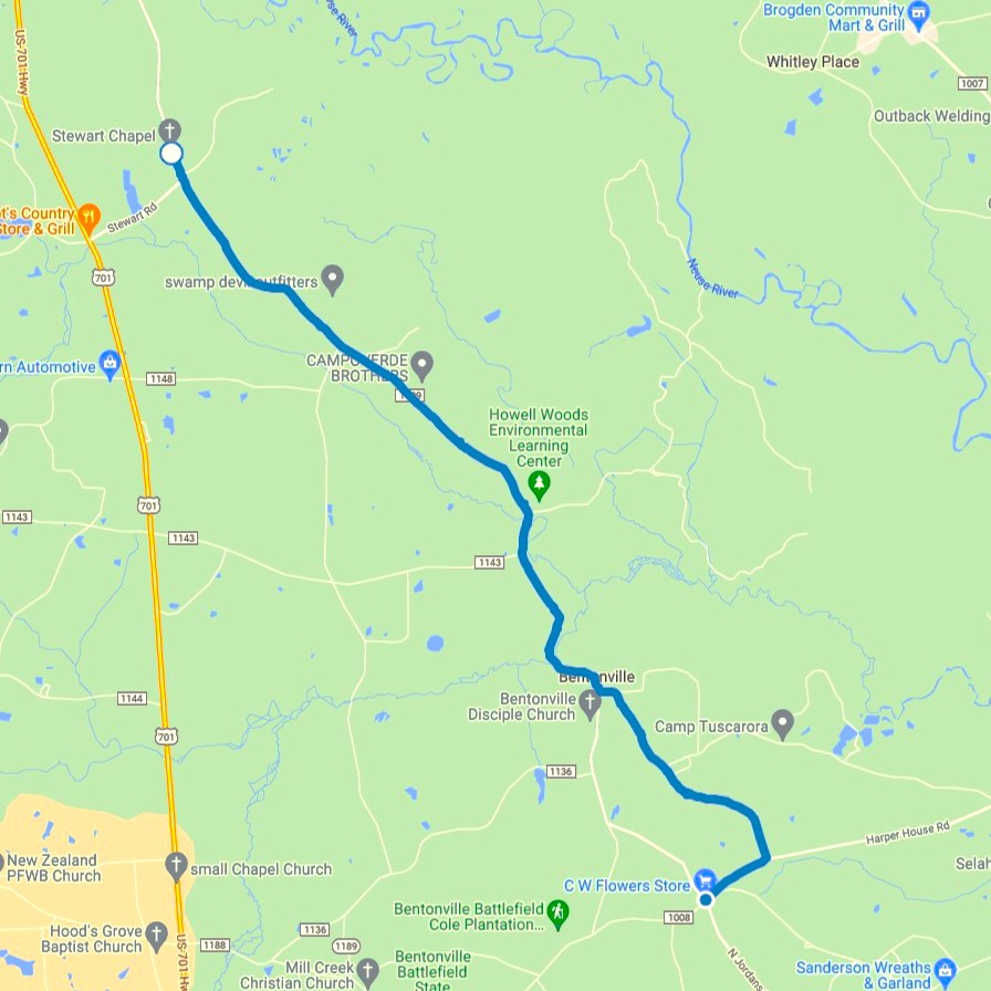 Stewart’s Chapel PFWB Church in Four Oaks to C W Flowers Store in Bentonville (Segment 11-Segment 12)