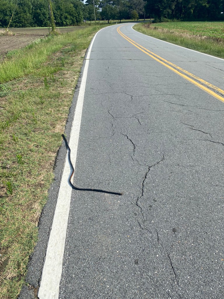 I walked by a HUGE actual snake early on—-easily 10 feet, thicker than my wrist. Copperhead. But because I was only 98% sure it was dead, I did not stop to take a photo.