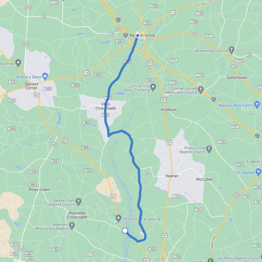Newton Grove United Methodist Church to Sanderson’s Kwik Stop in Clinton