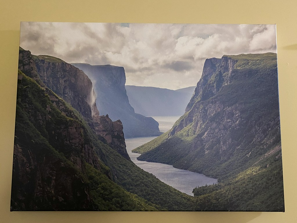 I looked up at the wall in my hotel room and finally noticed this print of the Western Brook fjord’s terminus where I was yesterday!