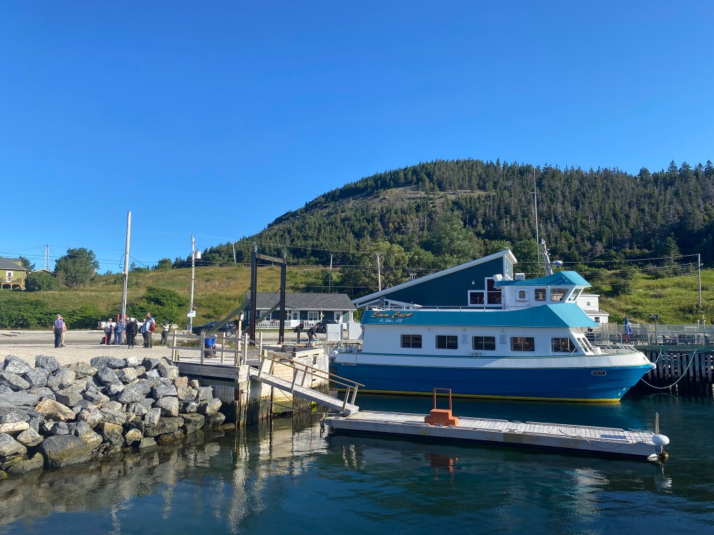 This morning there were some complicated travel machinations, which led half the group to wait at Norris Point for the other half to arrive, in order for us all to take the water taxi across Bonne Bay while our bus drove an hour to pick us up on the other side.
