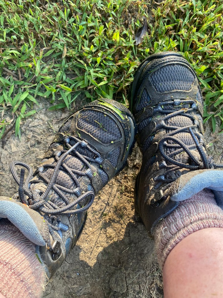 My boots and feet were soaked from all the road-shoulder grass. I had dry socks with me, but it wasn’t going to be any better heading back, so, never mind.