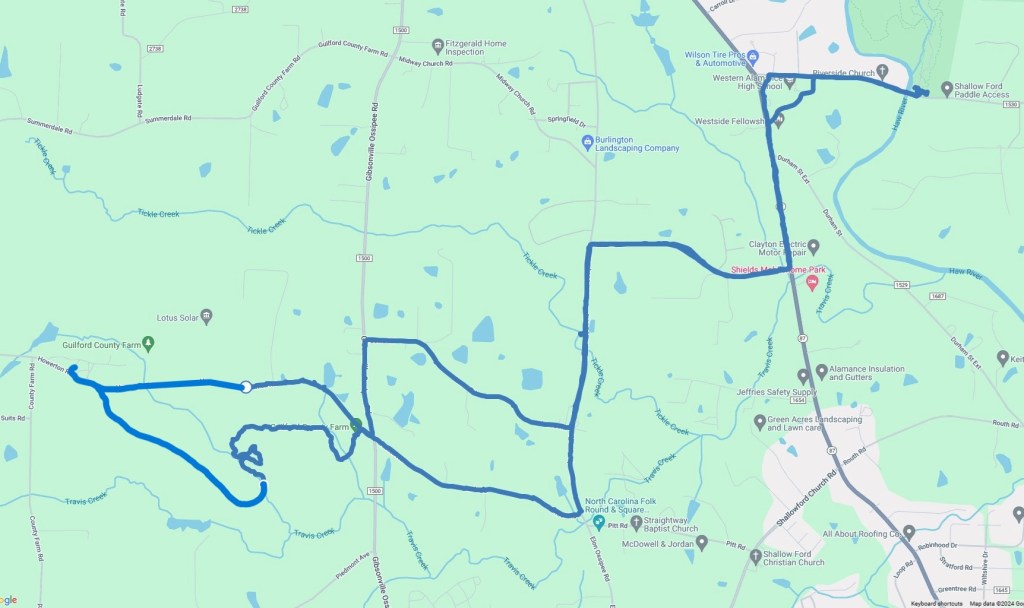 I chose to park at Guilford County Farm, because I’ve been there numerous times (birding), and it feels like a safer place to park than Shallow Ford.
