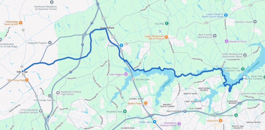 Townsend Trail on Yanceyville Road to Oak Ridge Methodist Church, westbound