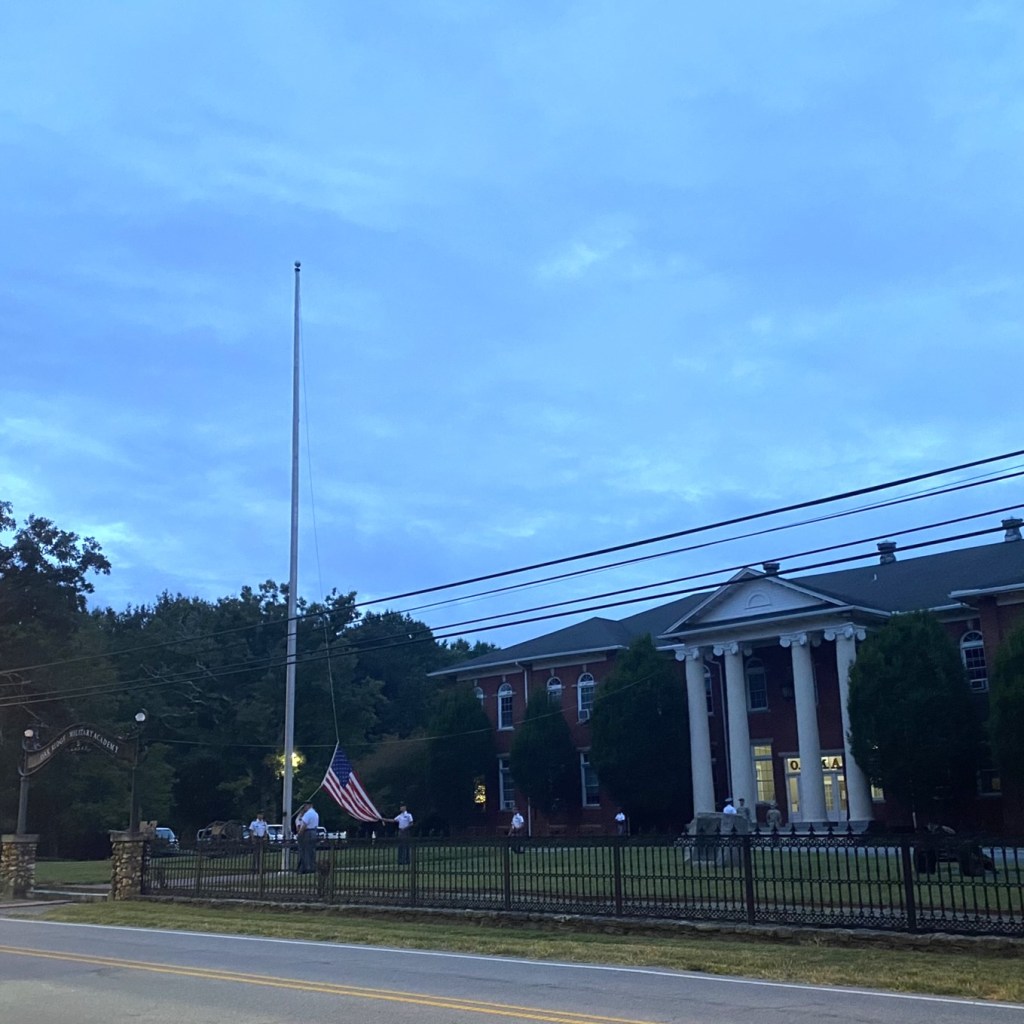 The flag-raising ceremony was in progress at the Oak Ridge Military Academy, founded in 1852.