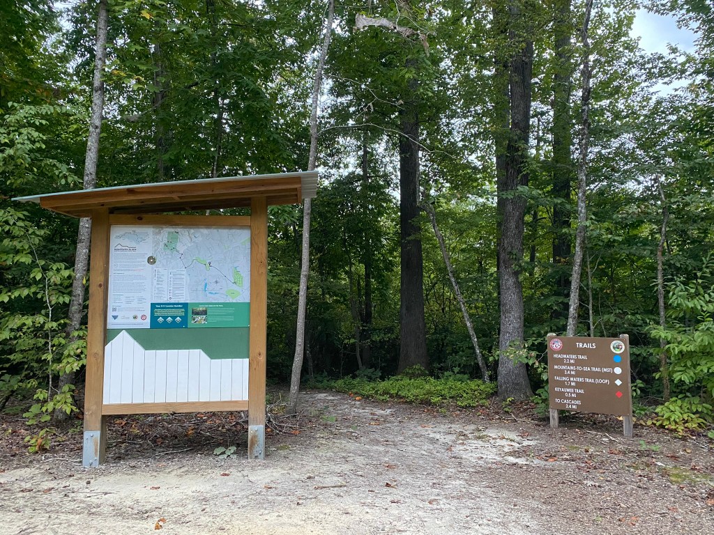 Headwaters Trailhead off of Linville Road. I don’t know who designed the Mountains-to-the-Sea graphic, but it is really striking, and always a delight to see.