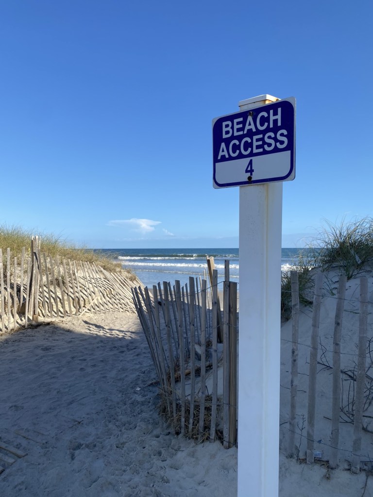 A much-needed bathroom break at Beach Access #2 (mile 4). There’s no ducking into the trees at the beach!
