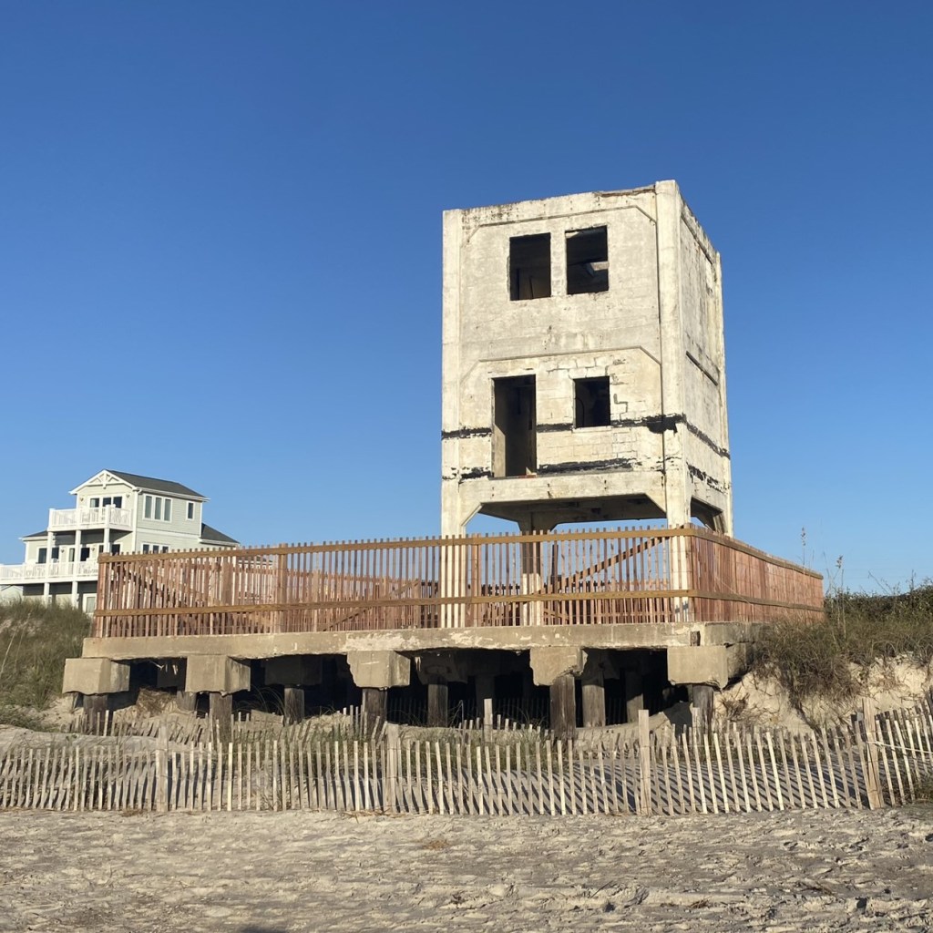 Observation tower from “Operation Bumblebee,” a WW2 experimental missile project by the Navy. https://islandlifenc.com/operation-bumblebee-topsail-towers/