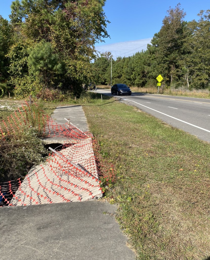 Soon after turning onto NC 210, the sidewalk ends, and you are on the shoulders for the next seven miles.