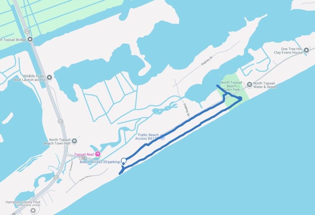 It’s 9 miles of beach walking, from North Topsail to Surf City.