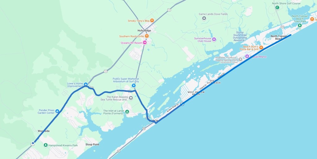 North Topsail Beach to Holly Shelter Game Land, westbound