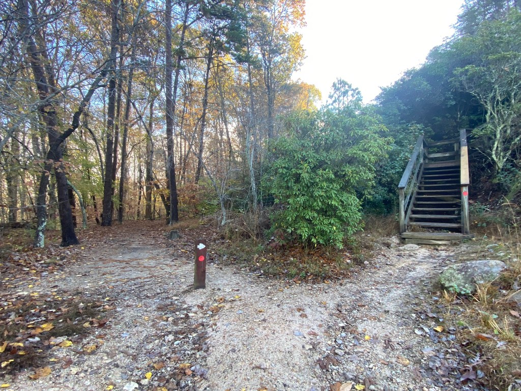 After circling Occoneechee on the Loop Trail, I took the exit spur to the small parking area on Eno Mountain Road.