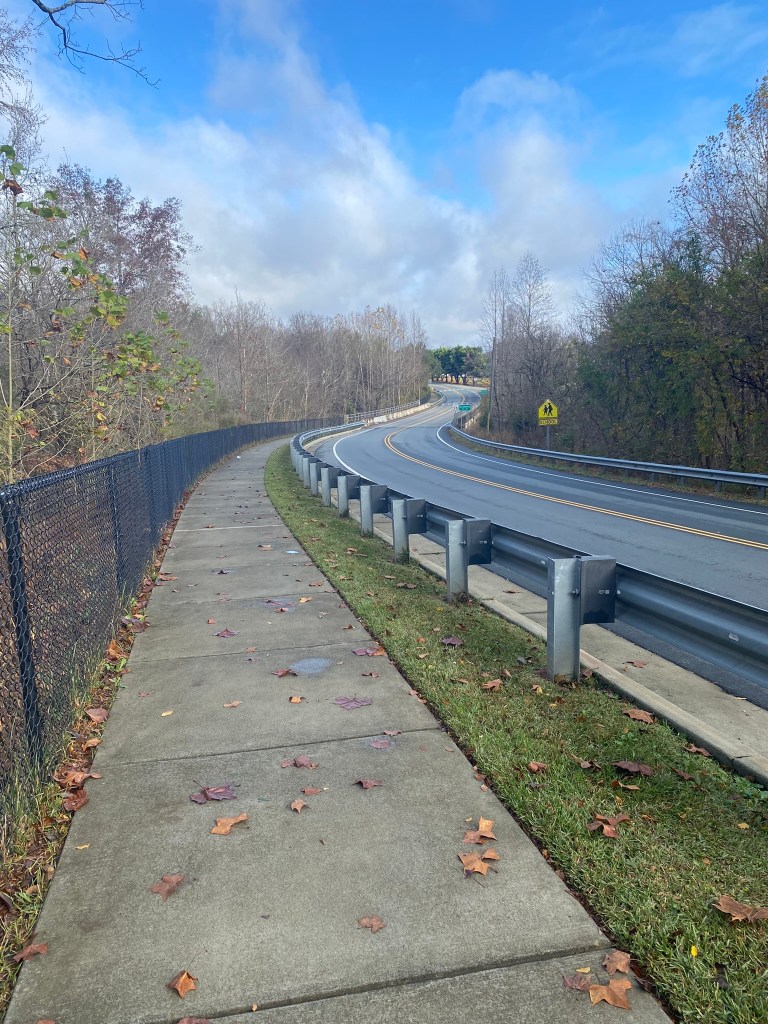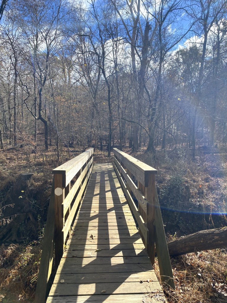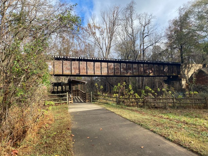 It’s a short walk on the sidewalk to cross the Eno River and connect with the western end of the Hillsborough Riverwalk.