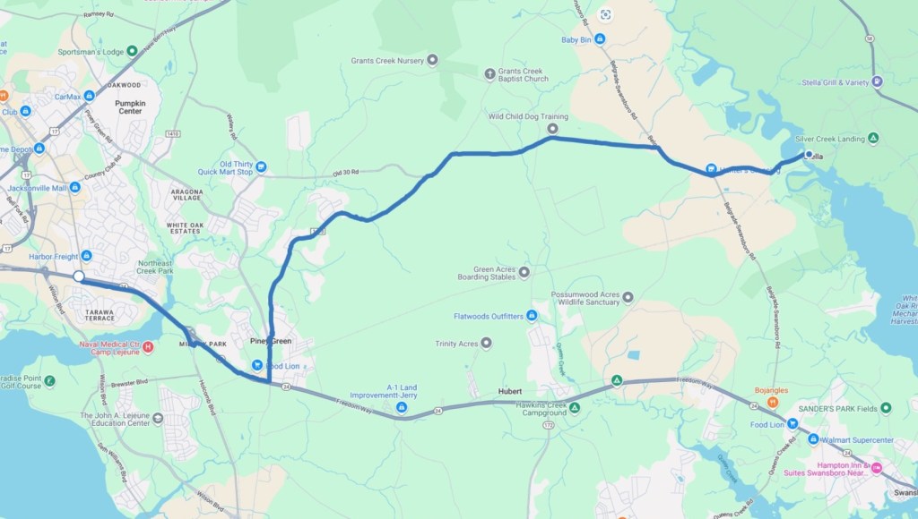This is the last glimpse of Camp Lejeune, before heading further east towards Stella.
