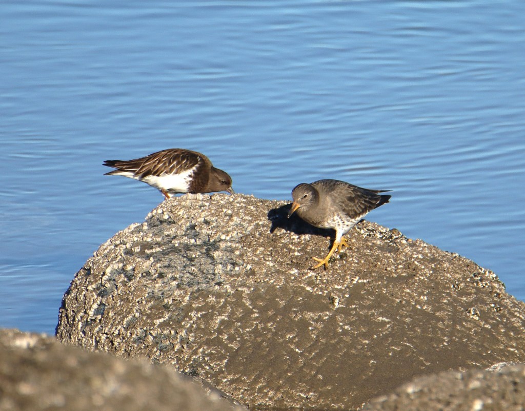 In Seaside we found both of our target birds: Black Turnstone (left) and Surfbird (right).