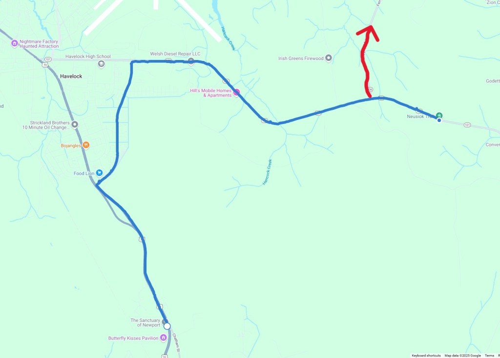 I spent two nights at a hotel in Havelock. That allowed me to string two hikes together. Driving time is now about 3 hours each way–too far for a day trip.