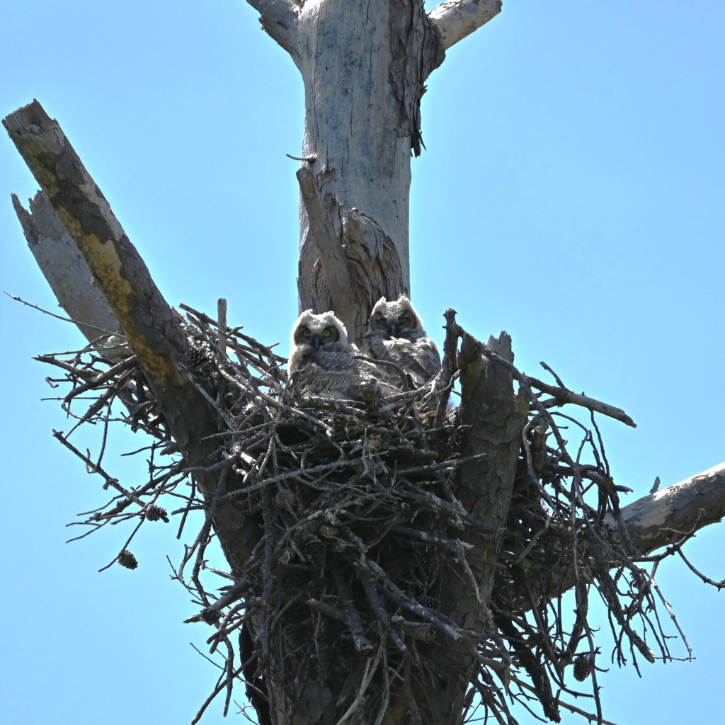 Great Horned Owlets! I saw the parent, as well, but when Loren came to get this photo, only the fledglings were on the nest.