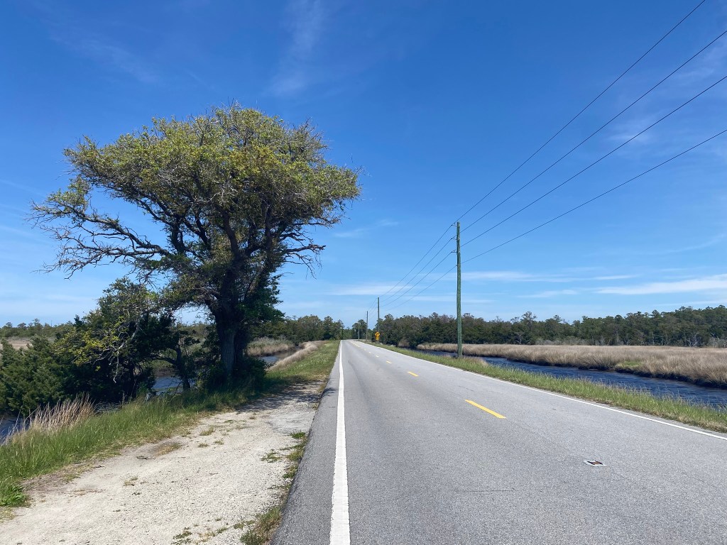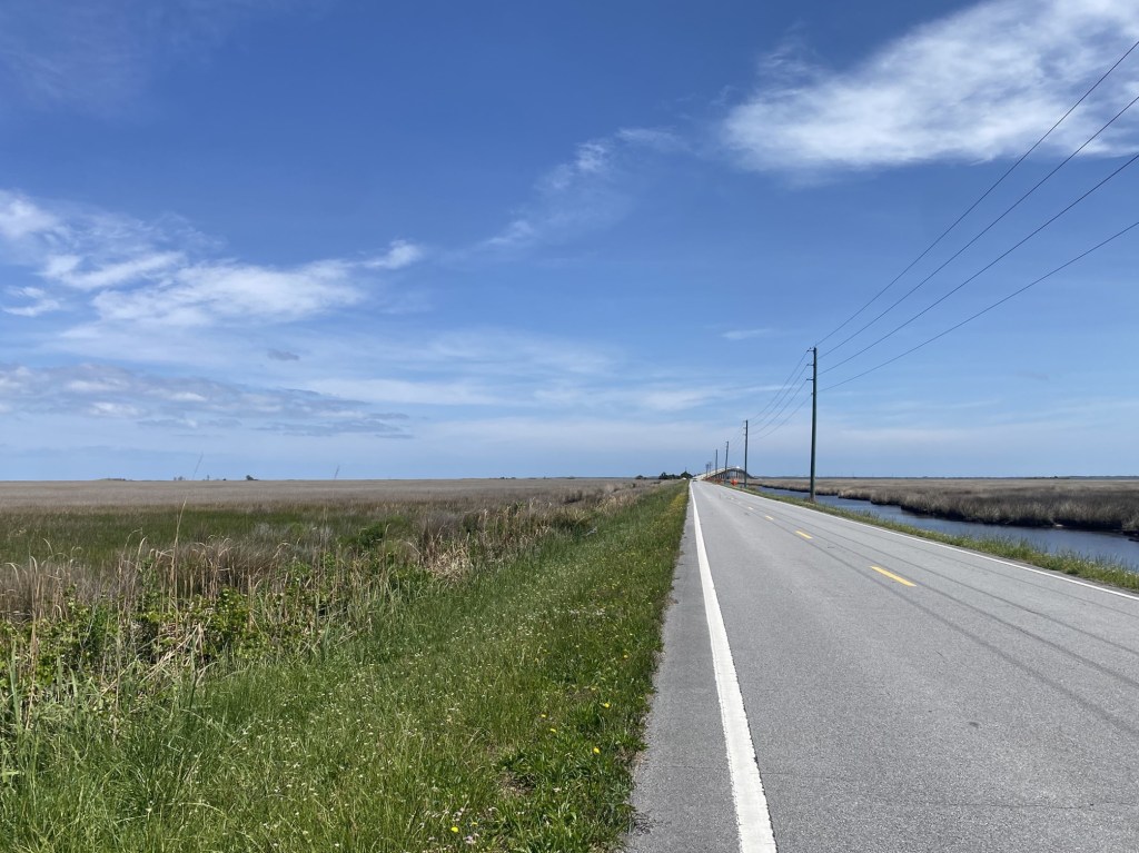 April 21, 2025. I had 13.8 miles to go to finish up Segment 17, which ends at the Cedar Island ferry terminal. This is Day 1 of a three-day, island hopping, hiking and birding trip.