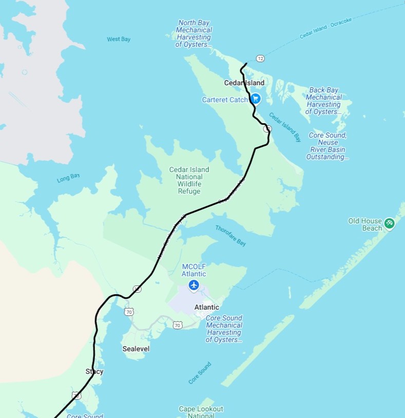 Stacy to Cedar Island ferry, eastbound