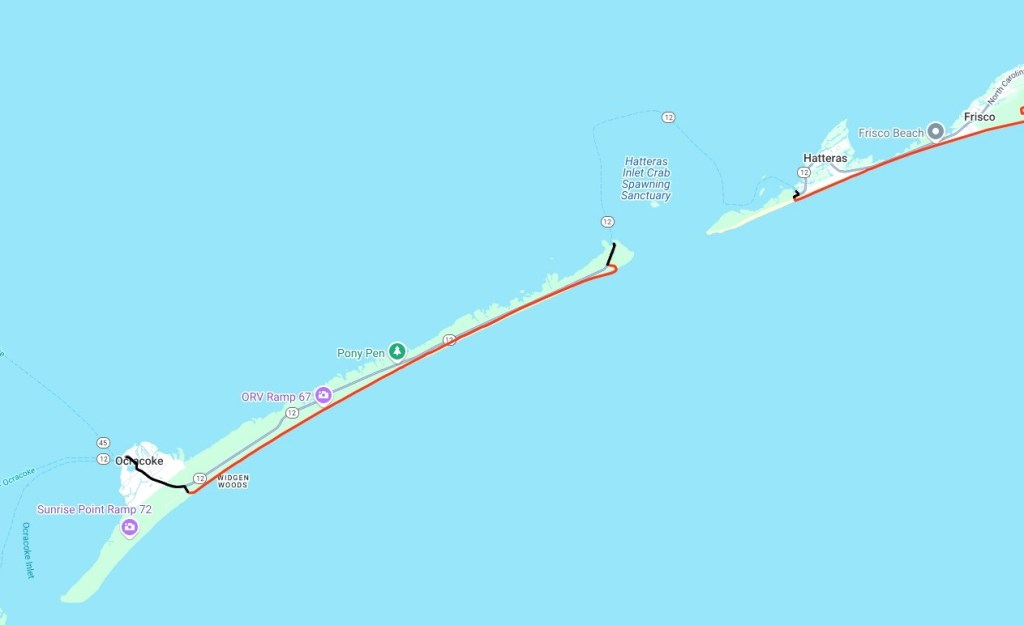 Ocracoke Island, then Hatteras to Frisco, eastbound