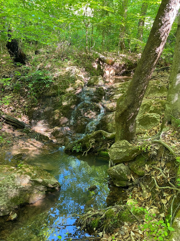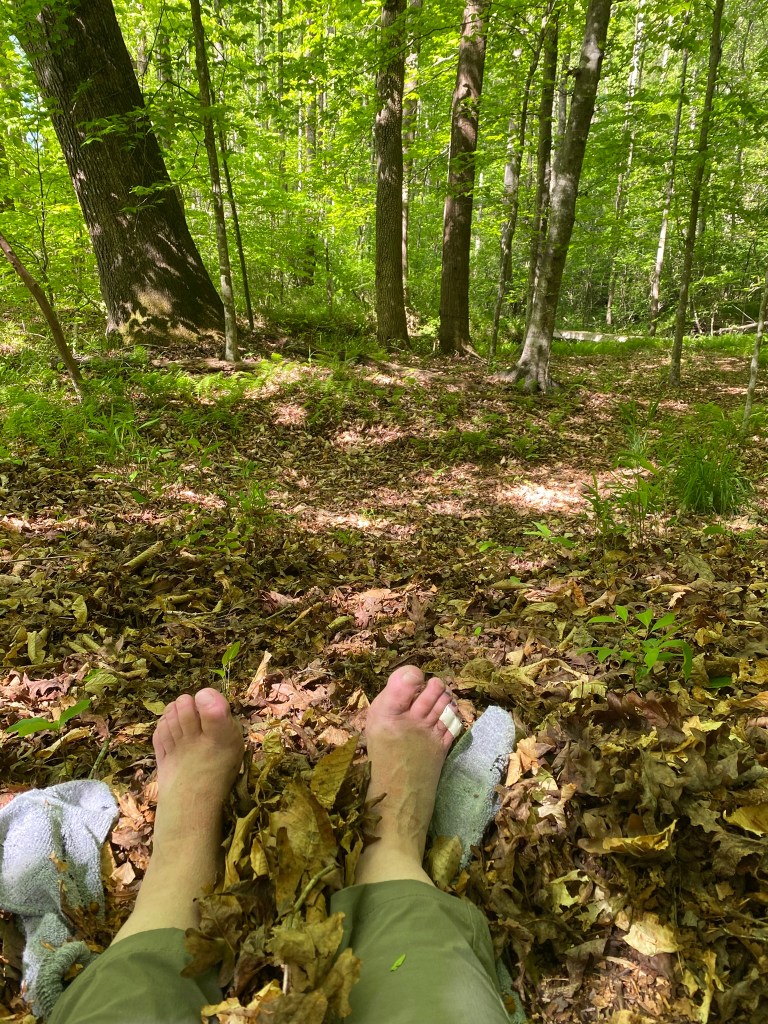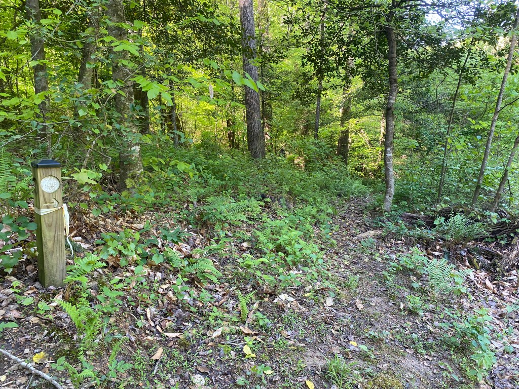 I had originally planned to take my long break here at this bench near the Friendship Trailhead, but I’m glad I stopped earlier, since back in the deeper woods I had two Wood Thrush serenading me with their transcendent music.