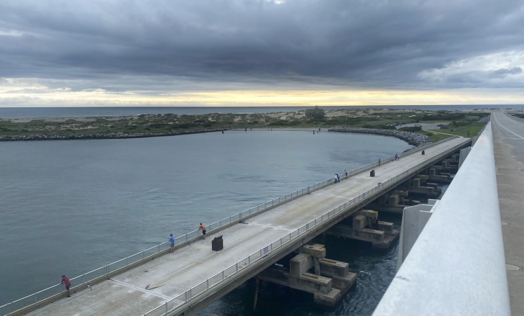 The bridge crossing over Oregon Inlet is three miles long, but traffic was light and there was a nice wide shoulder to walk on.